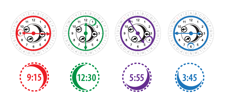 Your mission kit uses similar visual codes—the fish icon, clock graphics, and card-suit symbols (spade, diamond, heart, and club)—to connect clues. Each symbol links specific print pieces together to reveal the final code.